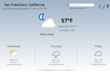 This Weather App demonstrates my skills in fetching and working with API data, as well as utilizing async and await in JavaScript.